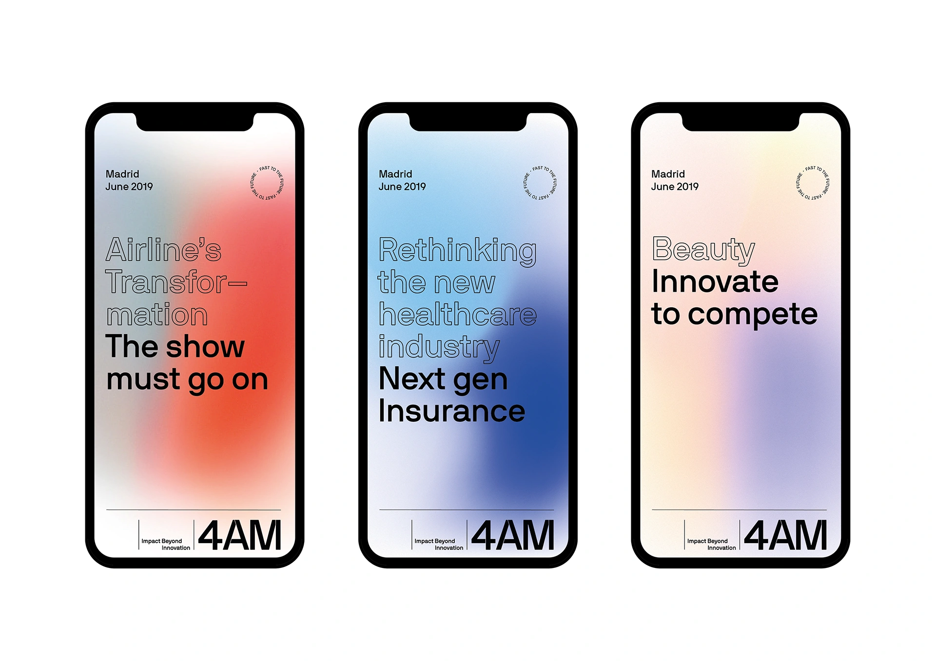 We worked with their team to define its market positioning, “Impact Beyond Innovation,” and created a visual identity that draws the idea of time and change. The logo references clock hands, while the design system uses evolving forms that adapt across different formats. The goal was to communicate that 4AM is the partner that helps businesses navigate the critical hours of transformation.