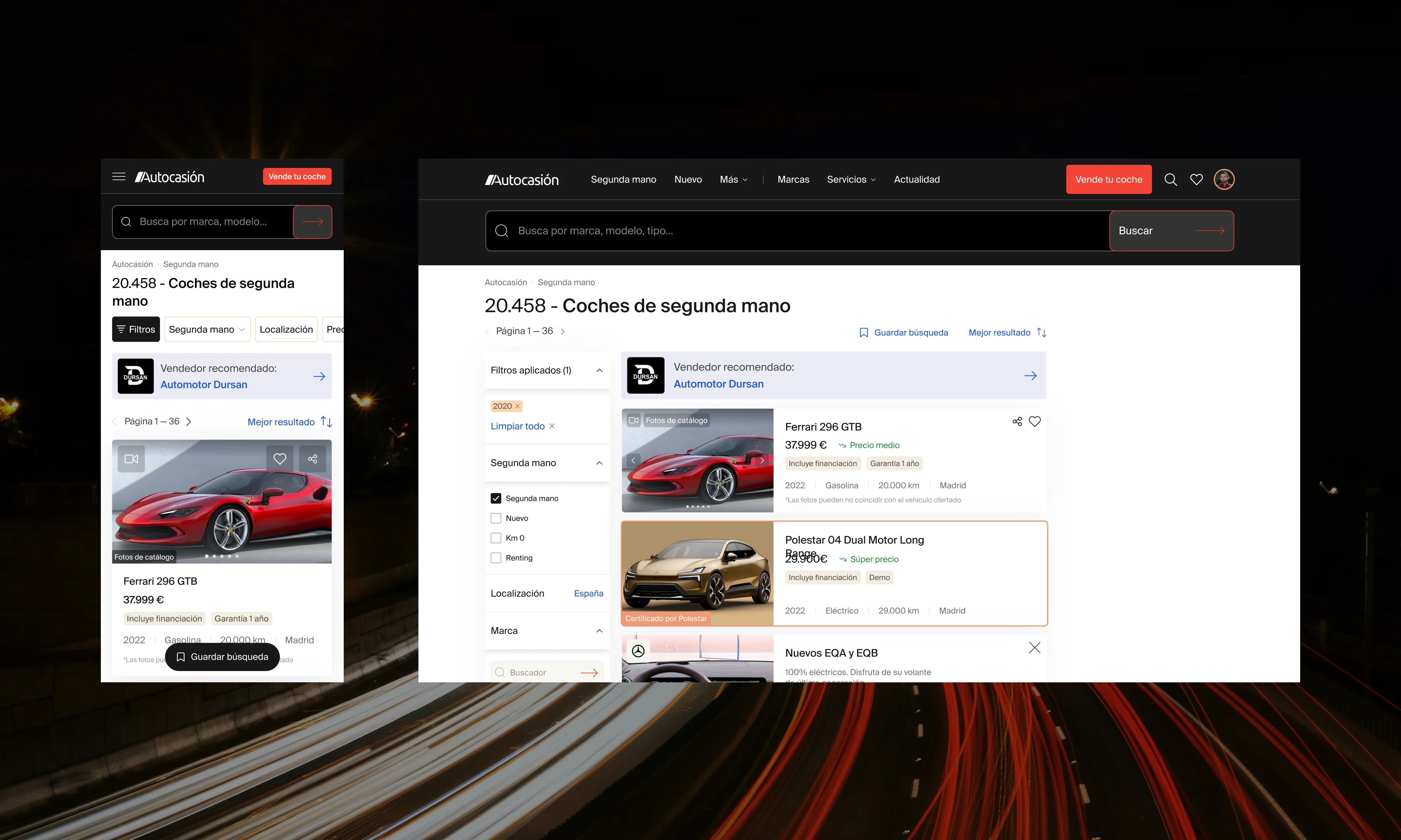 We centered on balancing modular flexibility with a rigorous UI structure. The approach prioritised intuitive user flows that leverage data to help buyers move from browsing to transacting with confidence. By refining the search and filter logic, we transformed a complex inventory into a navigable, personalized experience that caters to both casual explorers and high-intent buyers.
